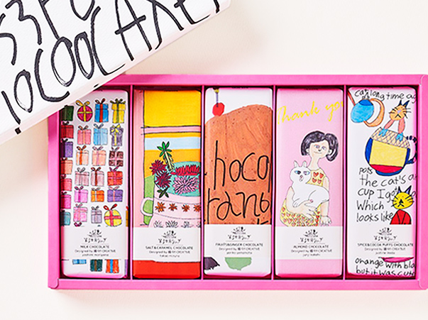 Artisan チョコレート 50g×5柄Artisanチョコレート全種が入ったギフトBOX。個性豊かな5種類のパッケージとフレーバーが楽しめるコンプリートセットです。ポップな箱入りで、プレゼントにおすすめです!ギフトBOXは山本頼子さんのアートワーク。
