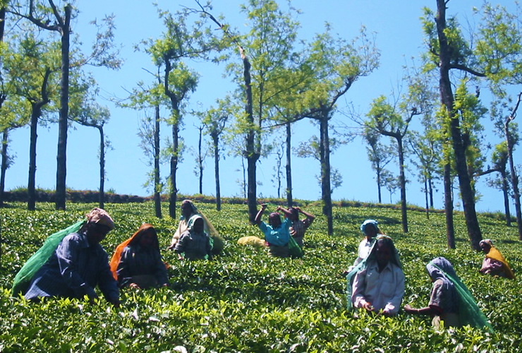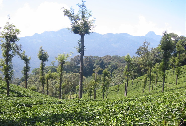シンガンパティ農園は、南インド最南端のタミル・ナードゥ州にあり、トラ、ヒョウ、象、絶滅危惧種のクロザルなどが棲息するカラカド自然保護区内に位置しています。保護区のゲートを越え、でこぼこ山道をジープで1時間ほど進むと、目の前に茶園と村落、森の織り成す美しい農園の遠景が現れます。