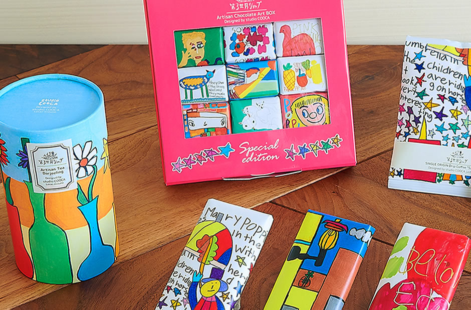 第3世界ショップでは、様々なハンディキャップを持った人が、好きなこと・得意なことで活躍し、仕事を得ることを目指し活動する福祉施設studio COOCA(スタジオクーカ)とコラボした、アートパッケージ「Artisanシリーズ」の商品を販売しています。