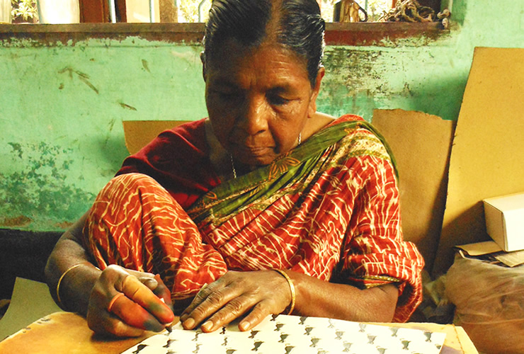 大学卒業後、衣類の卸売りをしているとき、お客さんが関心を持っていたシャンティニケタニと関わることに。2年ほど無報酬で工房で働き技術を覚えた後、独立。当初は10名程度だったワーカーが、今では注文量が多いときにはおよそ100名になってます。