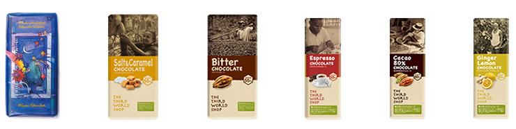 毎年大好評の、フェアトレードチョコレートの販売がスタートしました。新登場のソルト&キャラメルチョコレートや、カカオ分約80%のハイカカオチョコレート、ギフトにも人気のスパイスチョコ「ウインターチョコレート」など入荷しました。