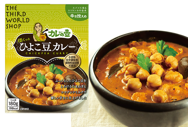 第3世界ショップの人気商品『カレーの壺』をベースにした、温めるだけで本格スリランカカレーが楽しめるレトルトカレーに、新しい仲間が登場!「マイルドテイストのレトルトカレーが欲しい! 」、「動物性原材料不使用のレトルトカレーはないの?」の声にお応えして、オーガニックのひよこ豆をメインにした、やさしい辛さのベジタリアンカレーができました。